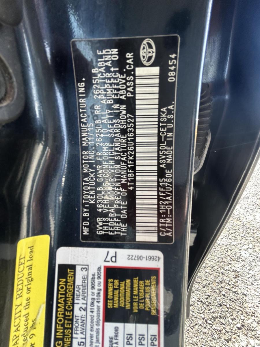 • VIN : 4T1BF1FK2GU163527